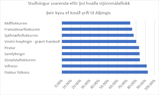 Þegar rýnt er í svörin við spurningunni hvaða stjórnmálaflokk fólk kysi ef kosið yrði til Alþingis kemur ýmislegt fróðlegt í ljós. Spurningin hljóðar svo: